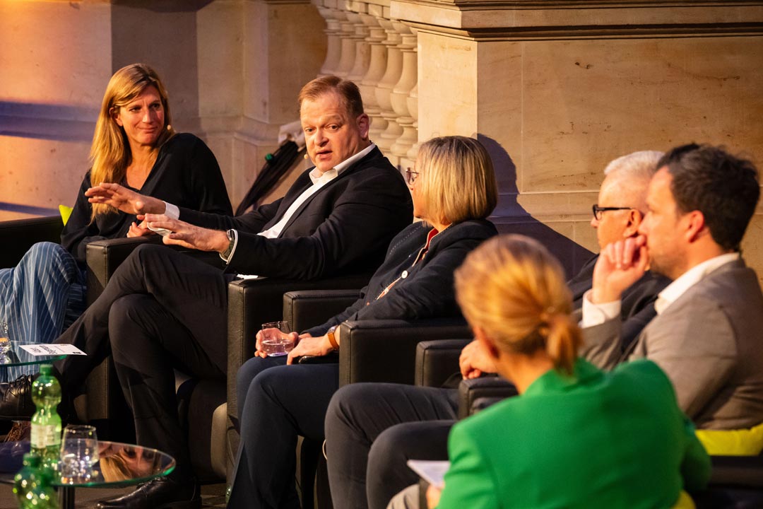 Neben Graf und Prof. Göpel diskutierten Albert Stegemann, stellvertretender Vorsitzender der CDU/CSU-Bundestagsfraktion und zuständig für Ernährung, Landwirtschaft, Heimat und Gesundheit, Dr. Stefan Knupfer, stellvertretender Vorsitzender des Vorstands der AOK PLUS, und Petra Bentkämper, Präsidentin des Deutschen LandFrauenverbandes. Die angeregte Diskussion vor etwa 150 Gästen im Museum für Kommunikation in Berlin wurde von der Fernsehjournalistin Judith Rakers geleitet, die sich auch immer wieder selbst mit pointierten Statements in das Gespräch einschaltete.
